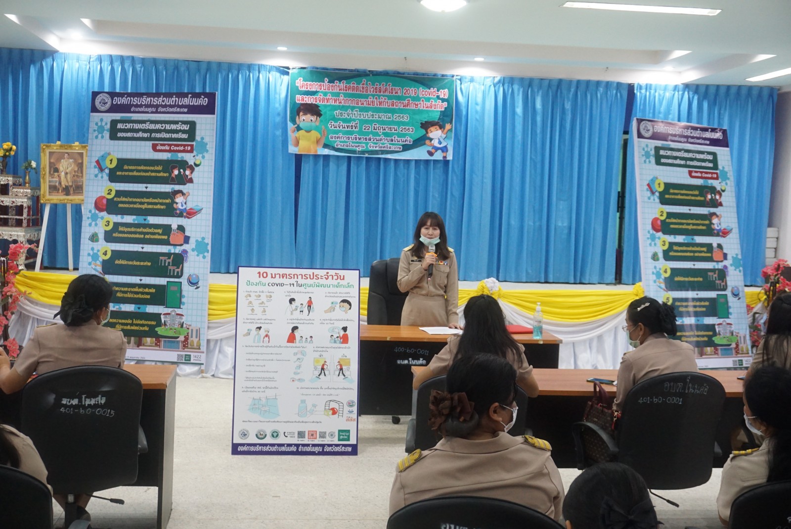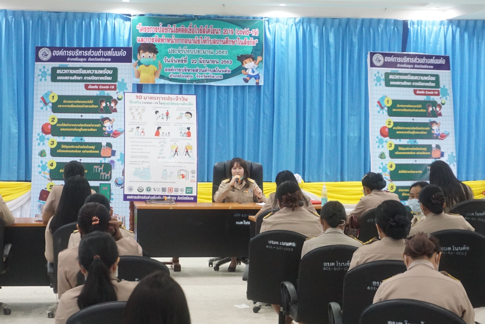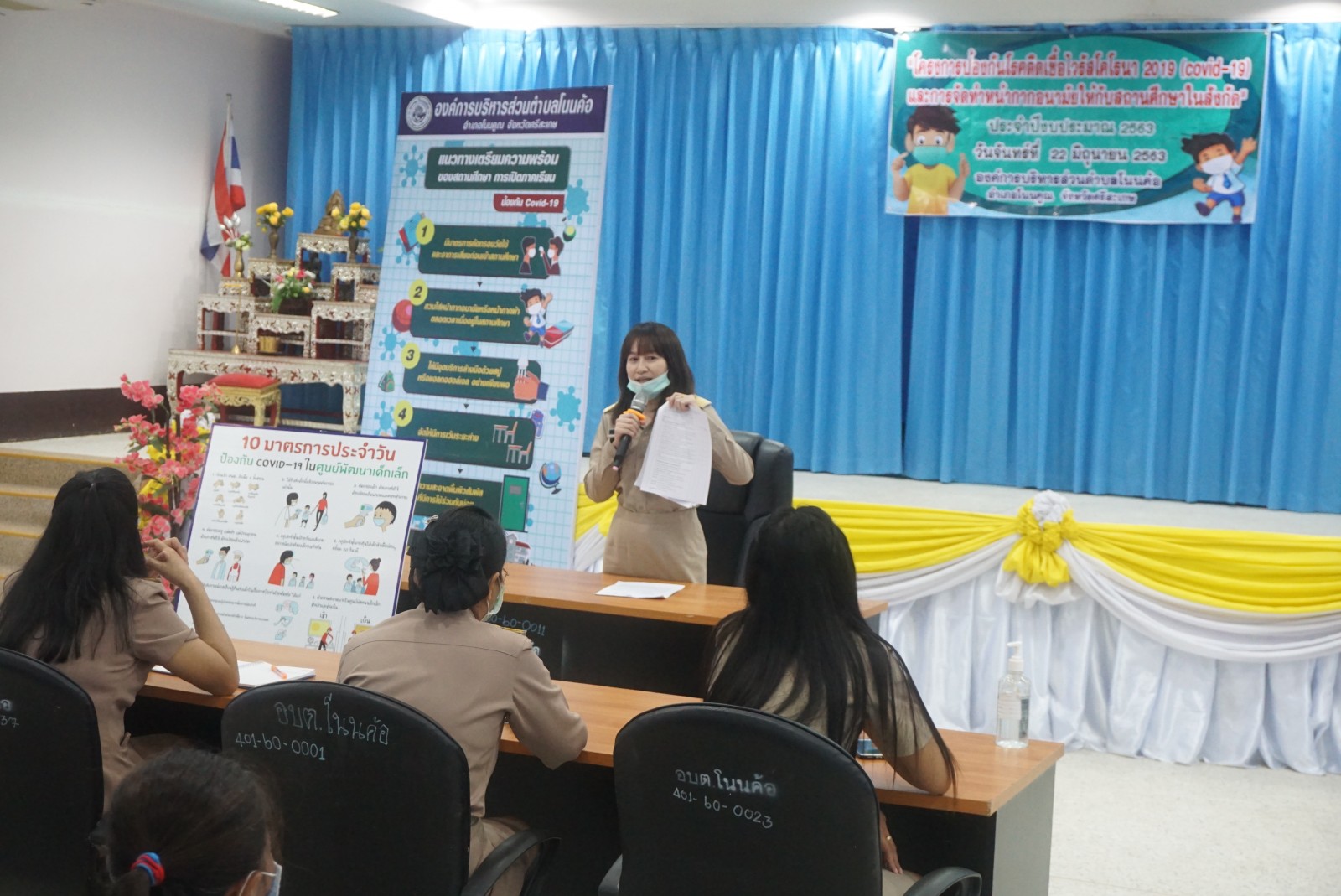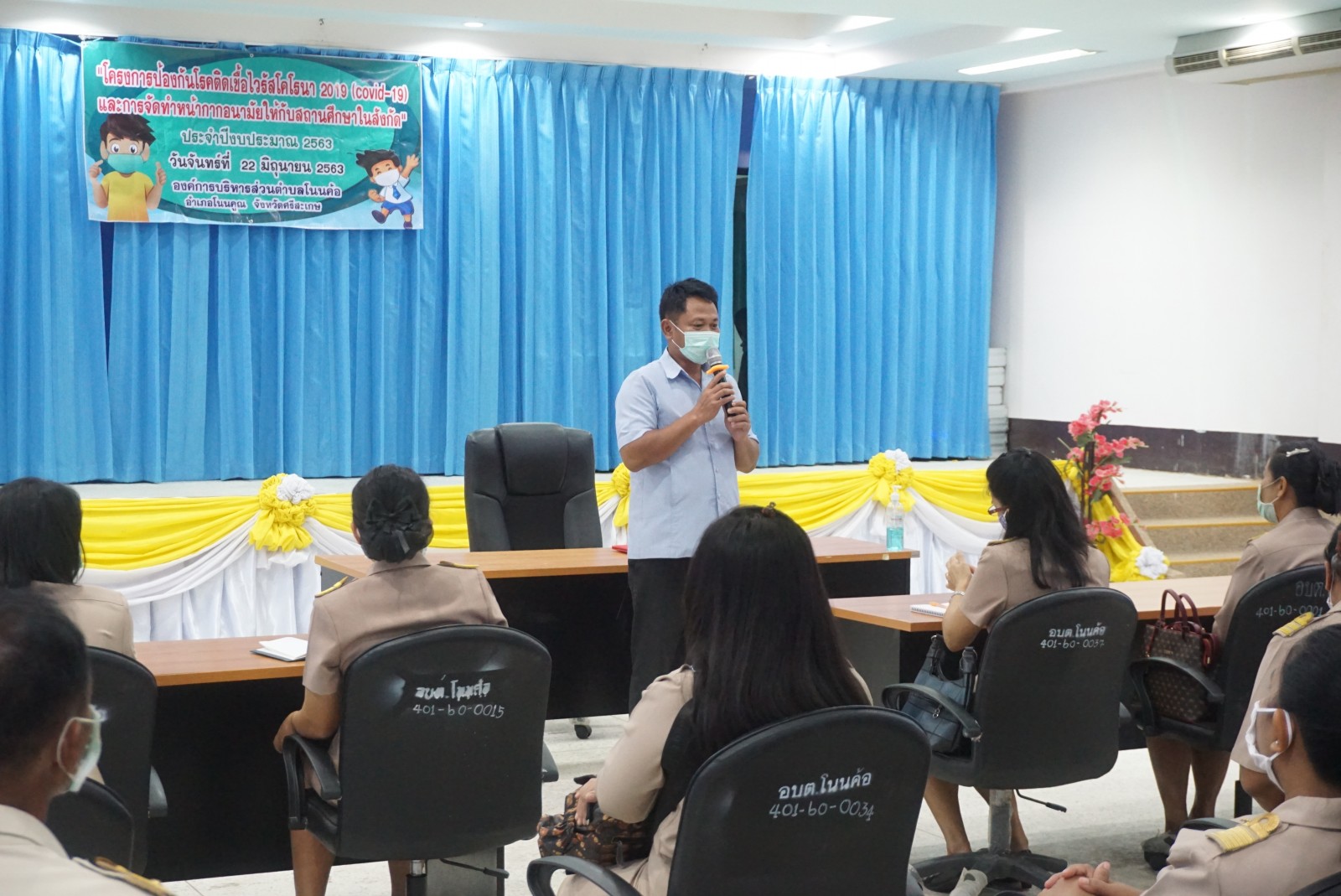 วันที่ 22 มิถุนายน 2563 เวลา 09.00 น. ณ ห้องประชุมองค์การบริหารส่วนตำบลโนนค้อ นำโดย นายชาติชาย เลขาตระกูล นายกองค์การบริหารส่วนตำบลโนนค้อ เป็นประธานในพิธีเปิดอบรมเชิงปฏิบัติการให้ความรู้โครงการป้องกันโรคติดเชื้อไวรัสโคโรนา 2019 (Covid-19) และการจัดทำหน้ากากอนามัยให้กับสถานศึกษาในสังกัด โดยมีหัวหน้าส่วนราชการ ผู้ปกครองนักเรียน รวมทั้งพนักงานครูส่วนท้องถิ่นของโรงเรียนในสังกัด อบต.โนนค้อ และผู้เกี่ยวข้อง เข้าร่วมรับฟังการฝึกอบรม อย่างพร้อมเพรียงกัน เพื่อเตรียมการรับมือบริหารจัดการเกี่ยวกับการป้องกัน ควบคุม การติดเชื้อไวรัสโคโรนา ในวันเปิดภาคเรียนของโรงเรียนในสังกัด ซึ่งได้มีท่านวิทยากรจากโรงพยาบาลโนนคูณมาให้ความรู้เบื้องต้นโดยมุ่งเน้นไปที่วิธีการรักษาความสะอาดให้กับนักเรียน เช่น เรื่องการล้างมือให้ถูกวิธี การรับประทานอาหารในโรงอาหาร และหัวข้ออื่น ๆ ตามรายละเอียดมาตรการป้องกันที่กระทรวงศึกษาธิการได้กำหนด