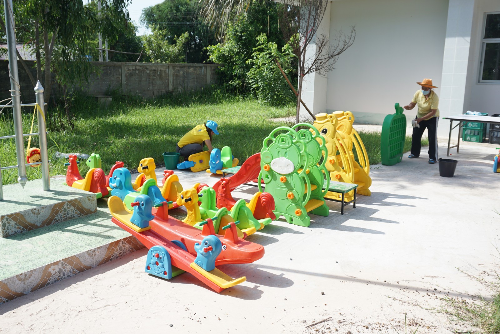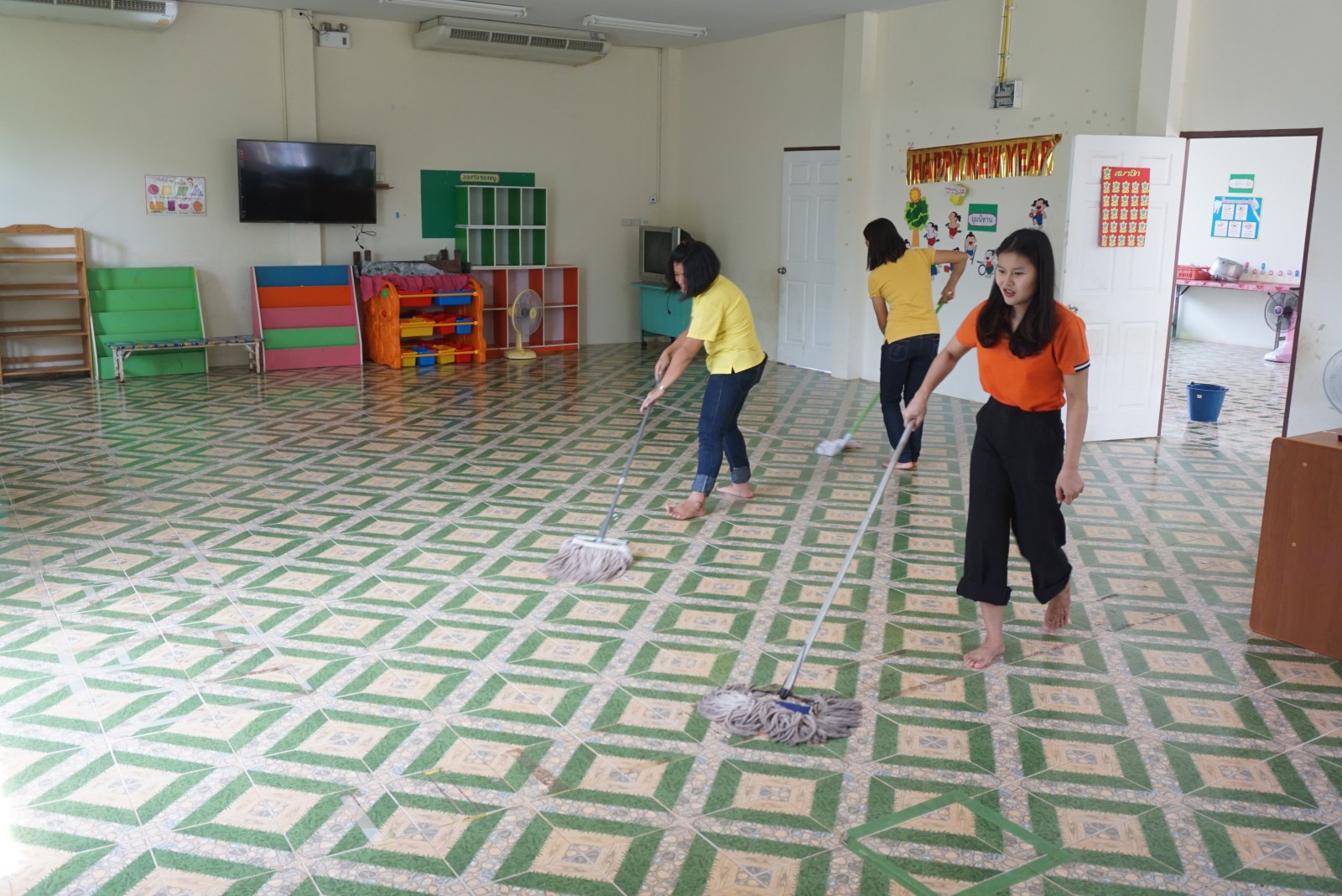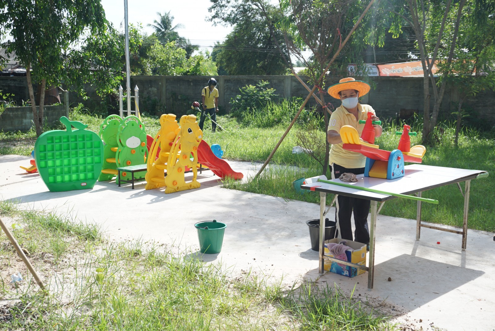 วันที่ 25 มิถุนายน 2563 งานป้องกันและบรรเทาสาธารณภัย ได้นำพนักงานลงพื้นที่ทำความสะอาดศูนย์พัฒนาเด็กเล็กก่อนวัยเรียนวัดทักษิณธรรมนิเวศ โดยได้รับความอนุเคราะห์จากนายชาติชาย เลขาตระกูล นายกองค์การบริหารส่วนตำบลโนนค้อ มอบอุปกรณ์และน้ำยาทำความสะอาดให้แก่ศูนย์พัฒนาเด็กเล็กก่อนวัยเรียนทั้ง 3 ศูนย์ โดยมีคุณครูเป็นผู้รับมอบ และได้ร่วมกันทำความสะอาดศูนย์ มีการฉีดพ่นน้ำยาฆ่าเชื้อ รวมถึงอุปกรณ์สื่อการเรียนการสอน เครื่องเล่นสนามต่าง ๆ ได้รับการทำความสะอาดด้วยน้ำยาฆ่าเชื้อ เพื่อเตรียมความพร้อมก่อนเปิดภาคเรียนในวันที่ 1 กรกฎาคม ที่จะถึงนี้และเป็นการป้องกันโรค Covid-19 ให้แก่บุตรหลานของเรา
