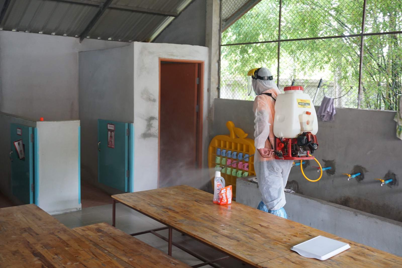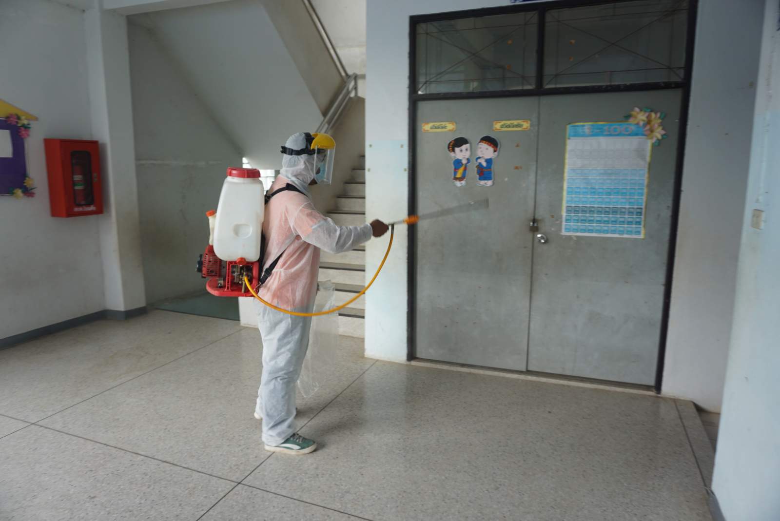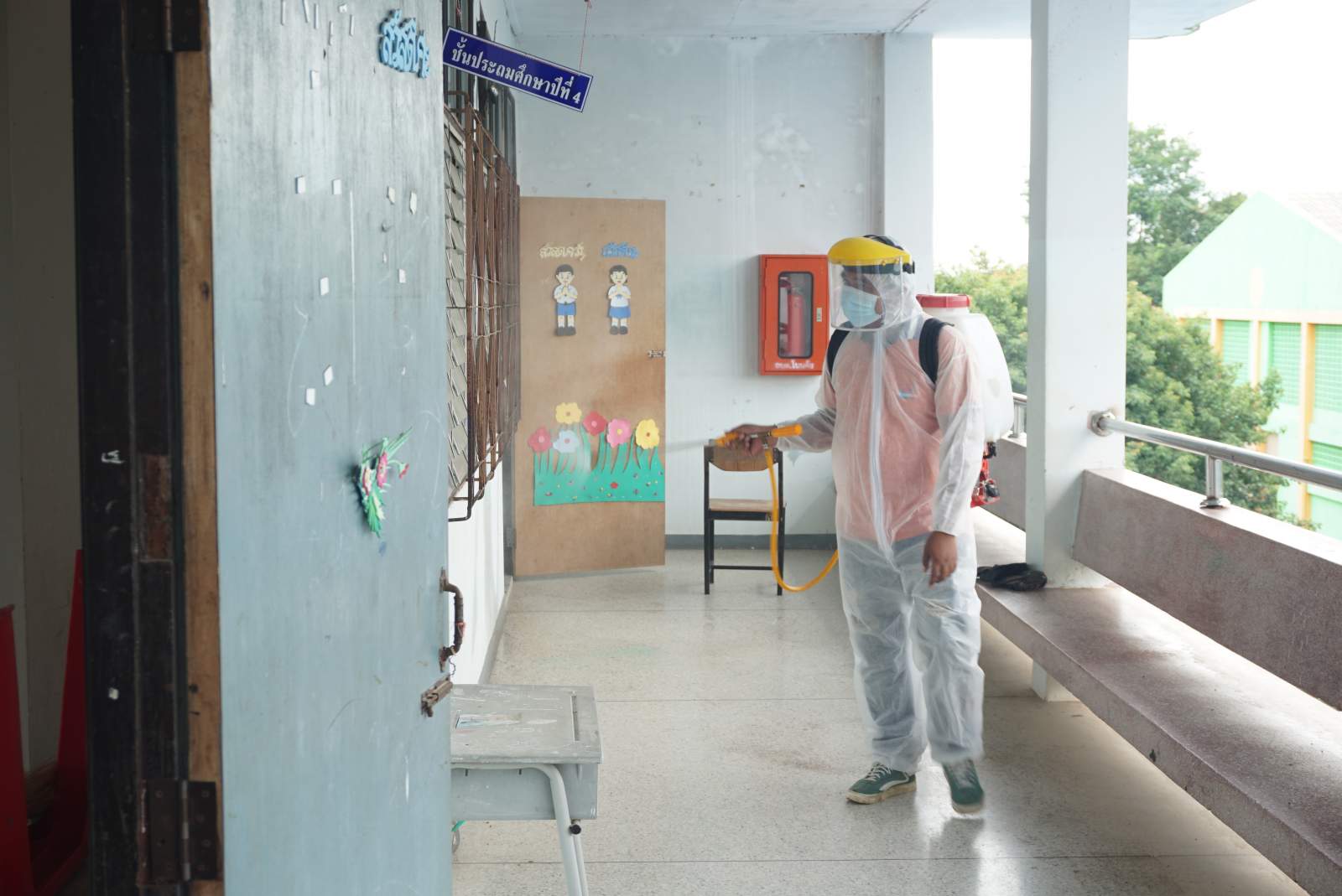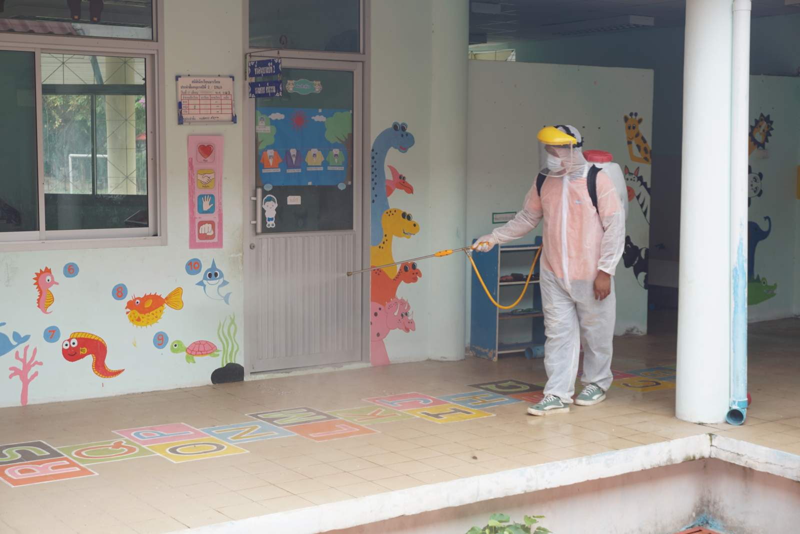 ฉีดน้ำยาฆ่าเชื้อในสถานศึกษา