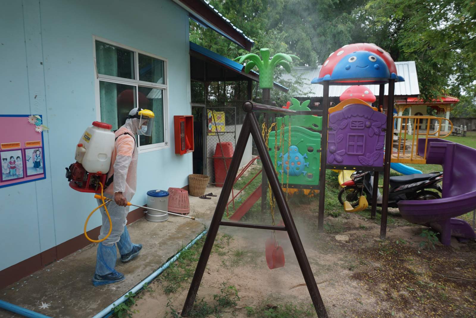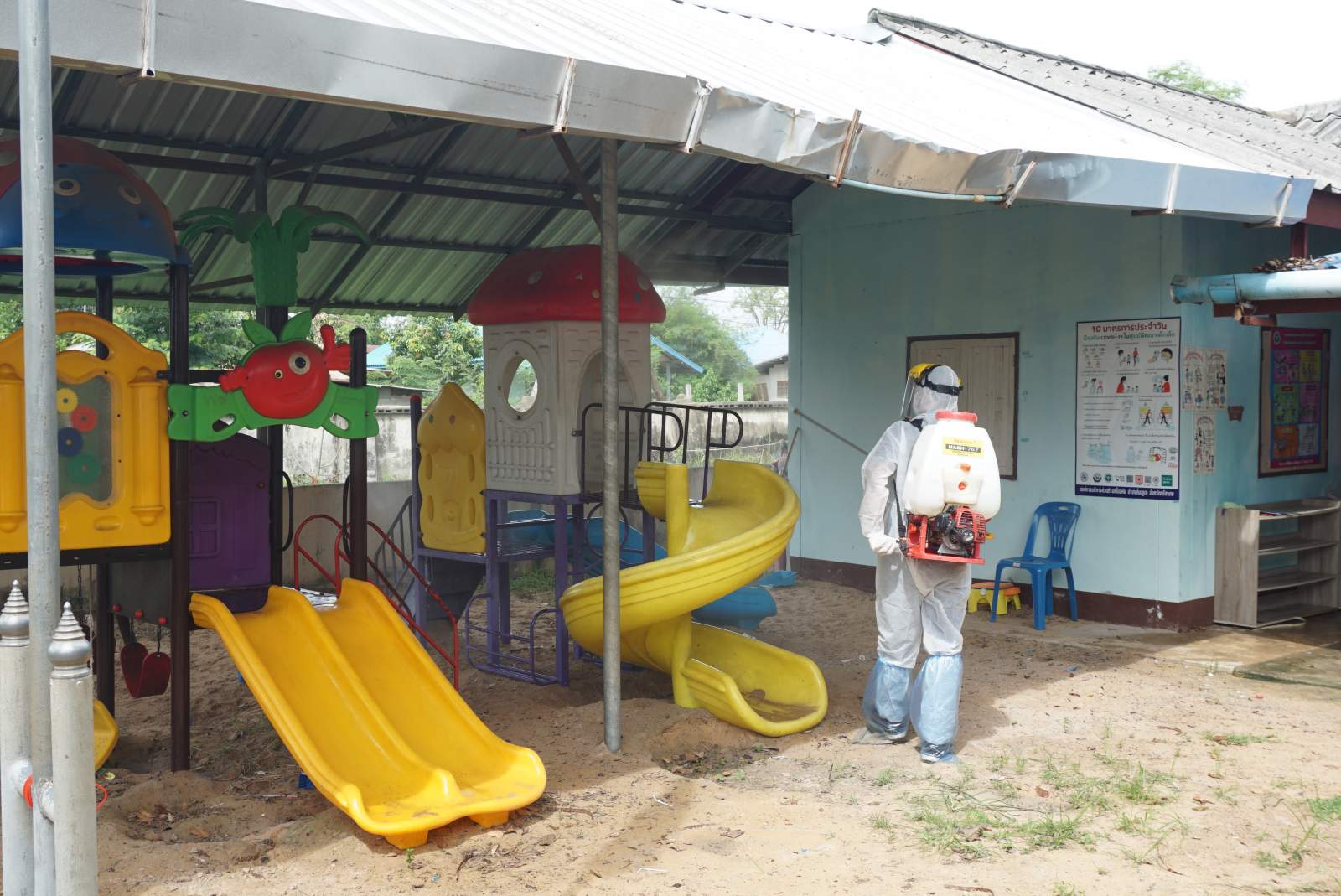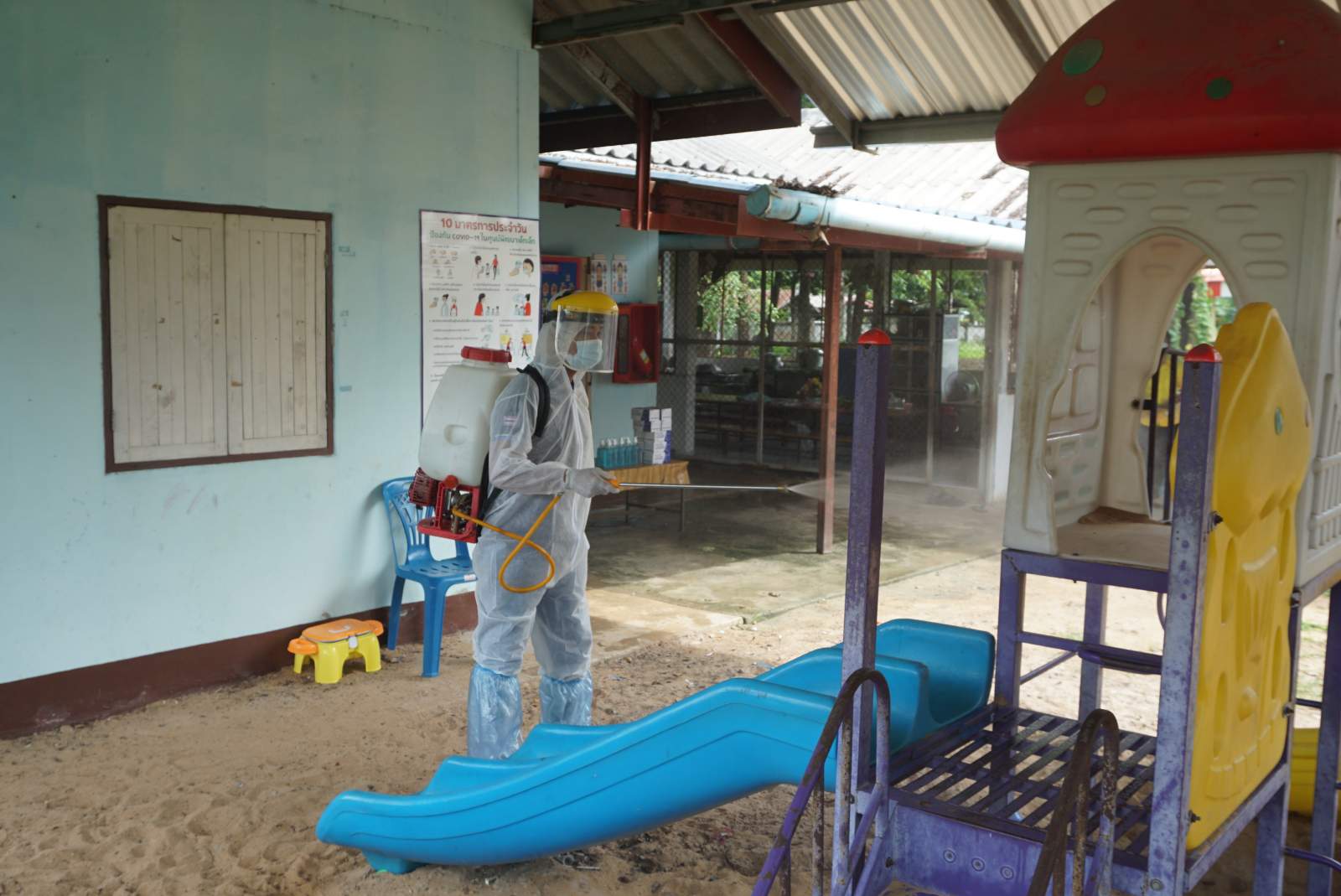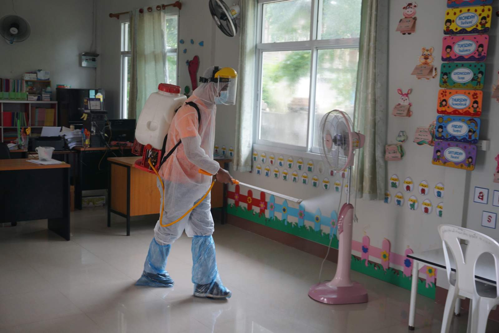 ฉีดน้ำยาฆ่าเชื้อในสถานศึกษา