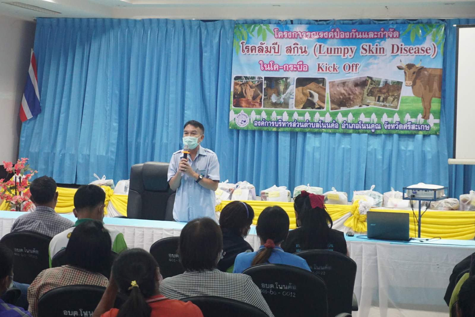 . ตำบลโนนค้อ Kick Off รณรงค์ป้องกันและกำจัดโรคลัมปี สกิน (Lumpy Skin Disease) ในโค-กระบือ วันที่วันที่ 23 มิถุนายน 2564 เวลา 09.30 น. ณ ห้องประชุมที่ทำการองค์การบริหารส่วนตำบลโนนค้อ อำเภอโนนคูณ จังหวัดศรีสะเกษ นายบุญชอบ พวงจำปา ปลัดอาวุโส เป็นประธานเปิดกิจกรรม Kick off โครงการรณรงค์ป้องกันและกำจัดโรคลัมปี สกิน (Lumpy Skin Disease) ในโค-กระบือ โดยมีนายชาติชาย เลขาตระกูล นายกองค์การบริหารส่วนตำบลโนนค้อ กล่าวรายงานการดำเนินโครงการ ซึ่งได้รับเกียรติจากนายรุ่งโรจน์ เปี่ยมรุ่งเรือง ปศุสัตว์อำเภอโนนคูณ และนายธีรศักดิ์ แย้มศรี สาธารณสุขอำเภอโนนคูณ ร่วมเป็นวิทยากรให้ความรู้กับผู้นำชุมชน และ อสม.ที่เข้าร่วมโครงการดังกล่าว