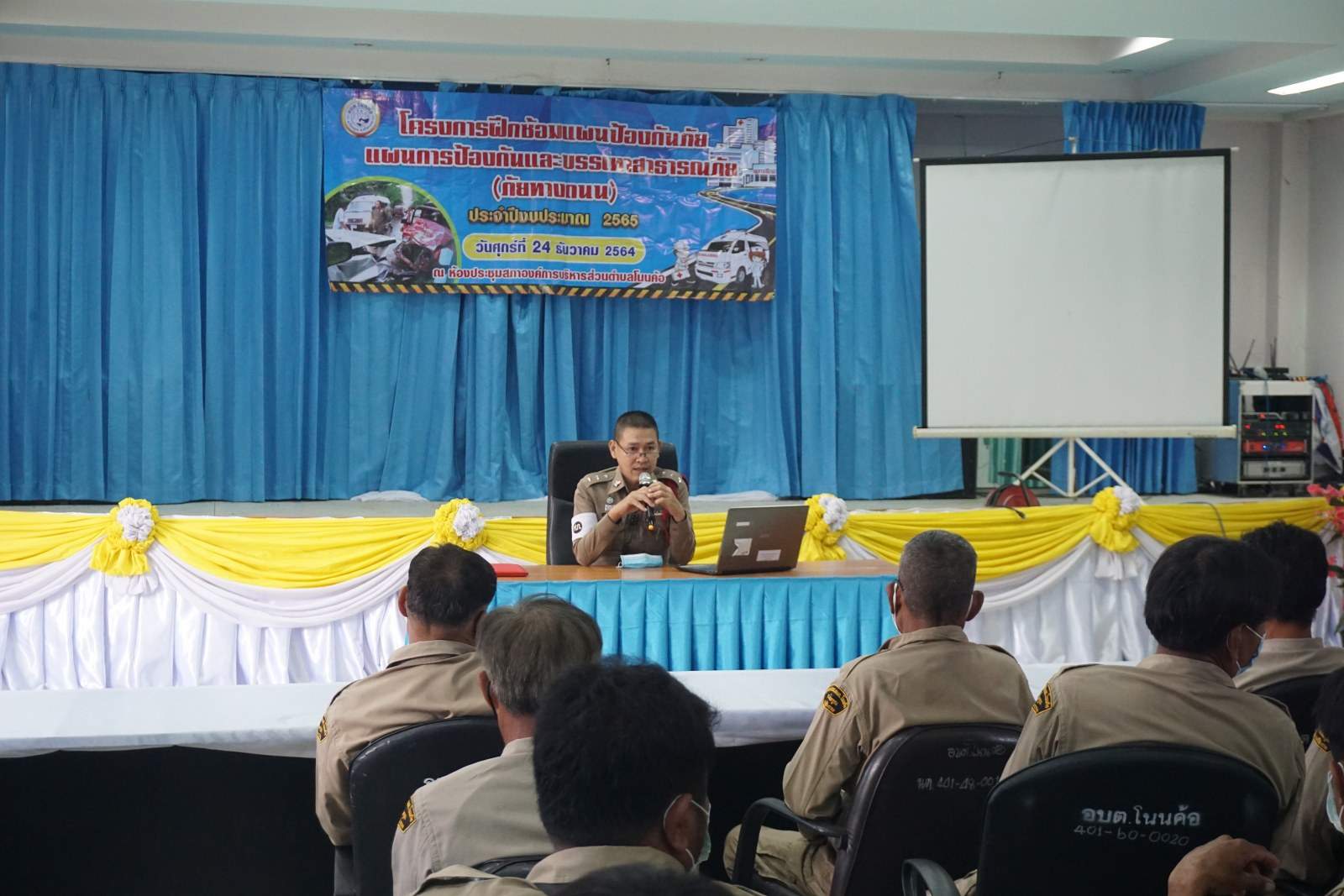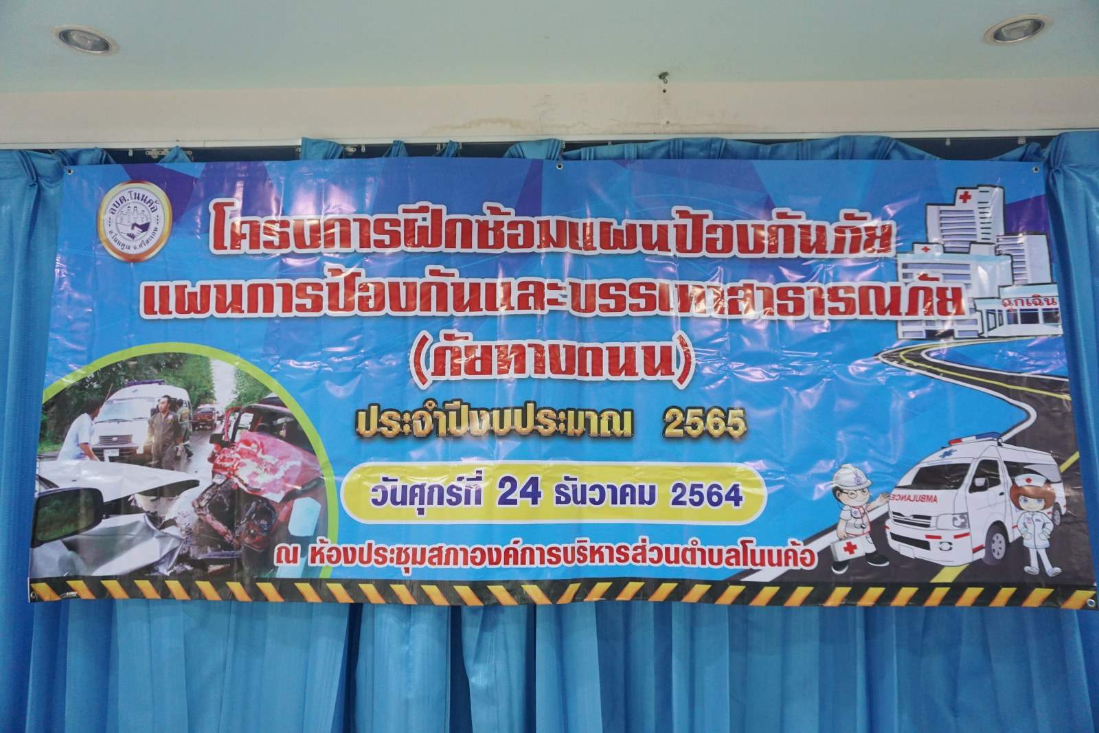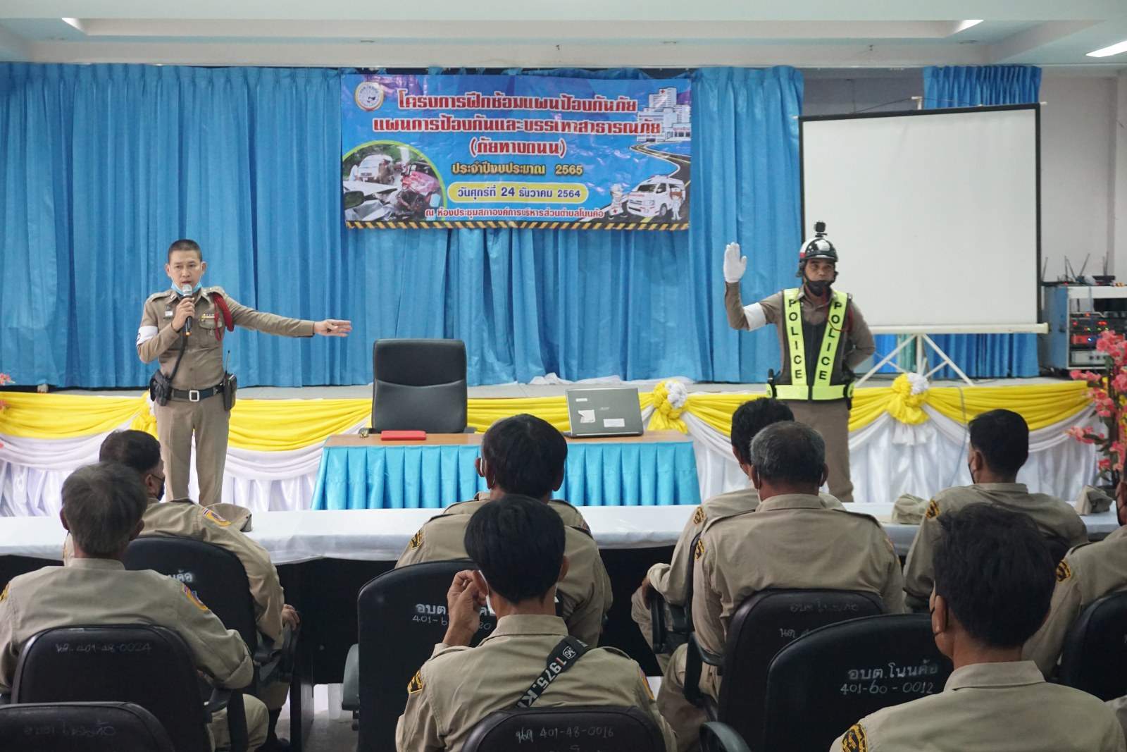 วันศุกร์ที่ 24 ธันวาคม 2564 เวลา 09.30 น. งานป้องกันและบรรเทาสาธารณภัย องค์การบริหารส่วนตำบลโนนค้อ จัดโครงการฝึกซ้อมแผนป้องกันภัยแผนการป้องกันและบรรเทาสาธารณภัย (ภัยทางถนน) ประจำปีงบประมาณ 2565 เพื่อเป็นการเตรียมความพร้อมให้กับอาสาสมัครป้องกันภัยฝ่ายพลเรือน (อปพร.) ที่จะต้องปฏิบัติหน้าที่ในช่วงเทศกาล เพื่อฝึกซ้อมทักษะความคล่องตัว เพื่อให้เกิดความชำนาญในการปฏิบัติหน้าที่ให้การช่วยเหลือประชาชน ในกรณีที่ประสบอุบัติเหตุ และด้วยพื้นที่ตำบลโนนค้อไปได้ปรับช่างทางการจราจรจาก 2 ช่องทางเป็น ถนน 4 ช่องจรจร ซึ่งอาจจะเกิดอุบัติเหตุที่ไม่คาดคิดขึ้นได้ เป็นการเตรียมความพร้อมเพื่อรับสถานการณ์จริง โดยมีนายอำพล บัวหอม ปลัดองค์การบริหารส่วนตำบลโนนค้อ ปฏิบัติหน้าที่นายกองค์การบริหารส่วนตำบลโนนค้อ เป็นประธานเปิดโครงการดังกล่าว และได้วิทยากรจากสถานีตำรวจภูธรโนนคูณ มาให้ความรู้เรื่องการให้สัญญามือและข้อมูลที่เกี่ยวข้องกับงานจราจร