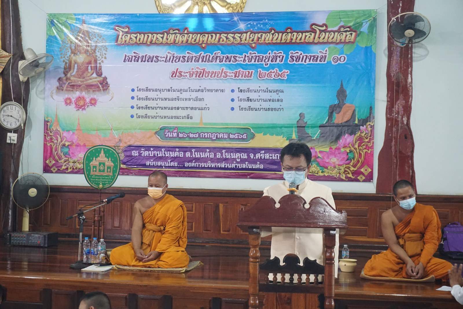 วันอังคารที่ 26 กรกฎาคม 2565 นายกรีฑา เครือคุณ นายกองค์การบริหารส่วนตำบลโนนค้อ ได้เป็นประธานเปิดกิจกรรม โครงการเข้าค่ายคุณธรรมยุวชนตำบลโนนค้อ เฉลิมพระเกียรติสมเด็จพระเจ้าอยู่หัว รัชกาลที่ 10 ประจำปีงบประมาณ 2565 ณ วัดบ้านโนนค้อ ตำบลโนนค้อ อำเภอโนนคูณ จังหวัดศรีสะเกษ เพื่อเป็นการเฉลิมพระเกียรติวันคล้ายวันพระราชสมภพ 28 กรกฎาคม พระบาทสมเด็จพระปรเมนทรรามาธิบดีศรีสินทรมหาวชิราลงกรณ พระวชิรเกล้าเจ้าอยู่หัว โดยพระสงฆ์วิทยากรผู้ทรงความรู้จะฝึกฝนเยาวชนให้มีทักษะชีวิตตามคำสอนและวัตรปฏิบัติของพระพุทธเจ้า ช่วยให้นักเรียนได้เกิดการพัฒนาจิตและปลูกฝังจริยธรรม คุณธรรม และศีลธรรม ตามหลักพุทธศาสนาอันเป็นแนวทางการประพฤติตนที่ดี โดยมีโรงเรียนที่เข้าร่วมกิจกรรมดังกล่าว 7 โรงเรียนด้วยกันดังนี้ 1. โรงเรียนอนุบาลโนนคูณ (โนนค้อวิทยาคาร) 2. โรงเรียนบ้านโนนคูณ 3. โรงเรียนบ้านหนองจิกเหล่าเชือก 4. โรงเรียนบ้านเท่อเล่อ 5. โรงเรียนบ้านหนองสามขาดอนแก้ว 6. โรงเรียนบ้านร่องเก้า และ 7. โรงเรียนหนองมะเกลือ ซึ่งมีการดำเนินงานระหว่างวันที่ 26-27 กรกฎาคม 2565