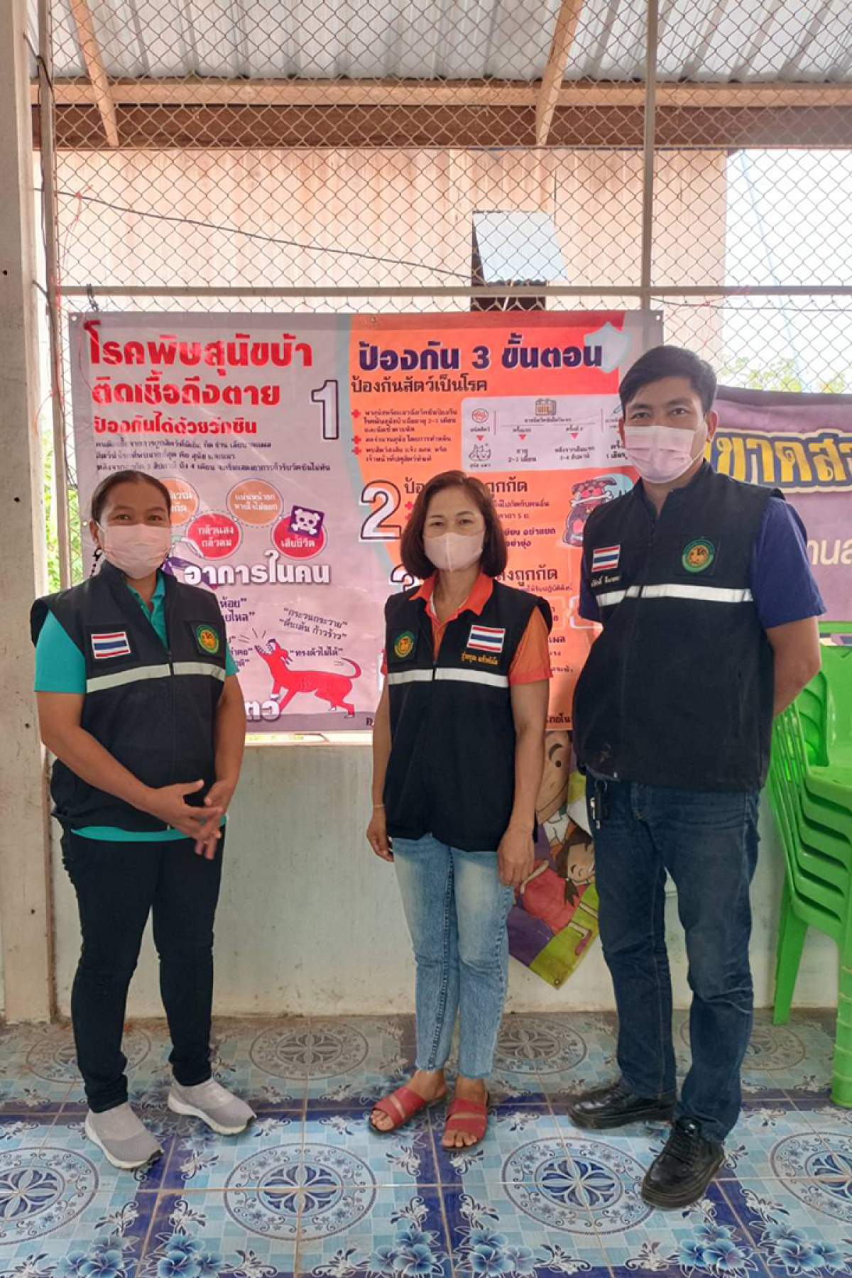 วันที่ 9 พฤษภาคม 2566 เวลา 9.00 น. งานสาธารณสุข สำนักปลัด องค์การบริหารส่วนตำบลโนนค้อ ได้ลงพื้นที่ออกหน่วยเคลื่อนที่ฉีดวัคซีนให้บริการประชาชน ตามโครงการสัตว์ปลอดโรค คนปลอดภัย จากโรคพิษสุนัขบ้า ตามพระปณิธานของ ศาสตราจารย์ ดร.สมเด็จพระเจ้า ลูกเธอ เจ้าฟ้าจุฬาภรณ์วลัยลักษณ์ อัครราชกุมารี ประจำปีงบประมาณ 2566 โดยนายกรีฑา เครือคุณ นายกองค์การบริหารส่วนตำบลโนนค้อ ได้ลงพื้นที่ติดตามให้กำลังแก่เจ้าหน้าที่ทุกท่าน อีกทั้งยังกำชับให้เจ้าหน้าที่อธิบายให้ความรู้เกี่ยวกับโรคพิษสุนัขบ้าเบื้องต้น ซึ่งโรคพิษสุนัขบ้าเป็นโรคติดต่อร้ายแรงชนิดหนึ่งเกิดจากเชื้อไวรัสชื่อ เรบีส์ ไวรัส (Rabies) ทำให้เกิดโรคได้ในสัตว์เลี้ยงลูกด้วยนมทุกชนิด รวมถึงในคนอีกด้วย อาการของโรคจะส่งผลต่อระบบประสาทโดยเฉพาะระบบประสาทส่วนกลางและอาจทำให้เสียชีวิต ดังนั้นวิธีการป้องกันที่ดีที่สุดคือ การฉีดวัคซีนพิษสุนัขบ้าให้กับสุนัข ภายใต้กรอบของกฎหมายที่กำหนดไว้ เช่น การสร้างภูมิโรคจากการให้วัคซีน การลดจำนวนสุนัขจรจัด การควบคุมอัตราการเกิดของสุนัขเลี้ยงและแมว การให้ความรู้ประชาชน ซึ่งการลงพื้นที่ในครั้งนี้ประกอบด้วย 5 หมู่บ้าน อาทิ หมู่ 3,6,16,19 และ 20 ประชาชนได้ให้ความร่วมมือนำสุนัขและแมวมาฉีดวัคซีน หรือหากไม่สามารถจับมาได้ก็สามารถรับวัคซีนกลับไปฉีดเองที่บ้านได้ แต่ต้องบรรจุในภาชนะทึบแสงและมีอุณหภูมิภายใน +2 ถึง + 8 องศาเซลเซียส ในการนำกลับไปฉีดวัคซีนให้สุนัขและแมวที่บ้าน