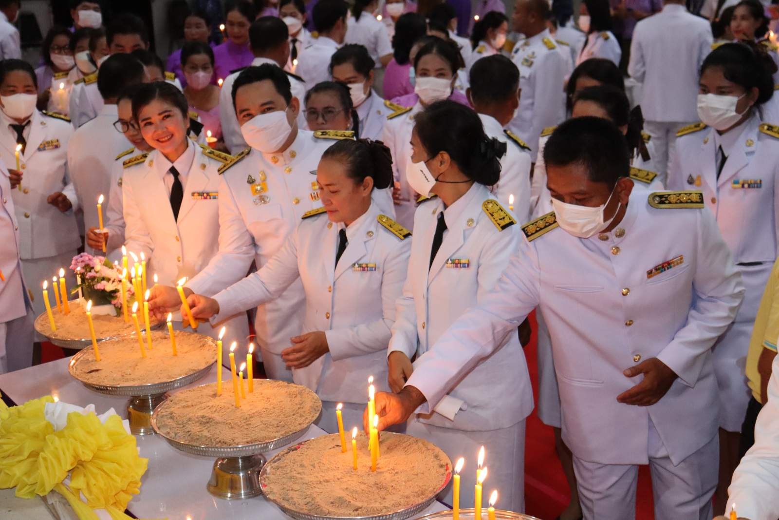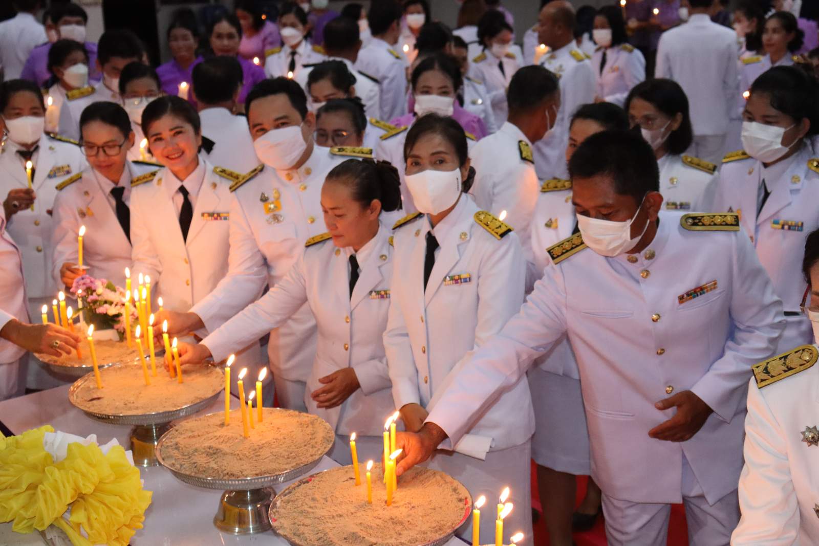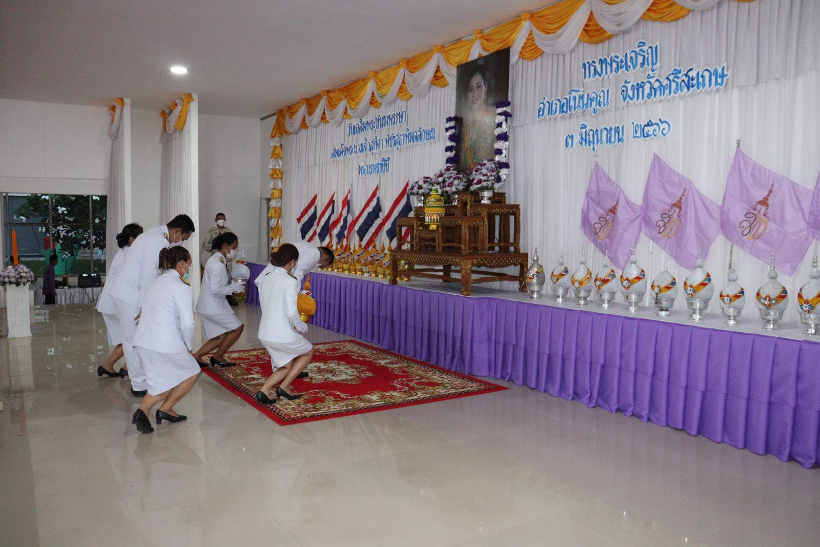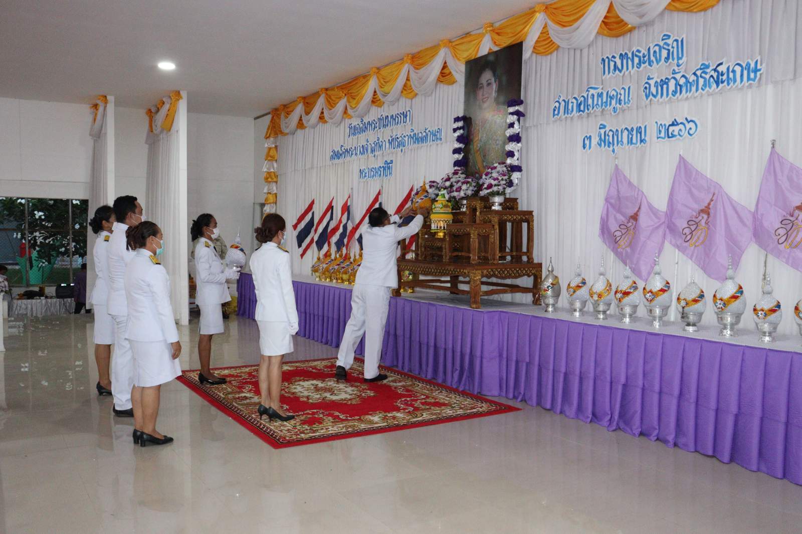 เวลา 07.30 น. วันที่ 3 มิถุนายน 2566 ณ หอประชุมที่ว่าการอำเภอโนนคูณ จังหวัดศรีสะเกษ ได้จัดพิธีทำบุญตักบาตรเนื่องในโอกาสวันเฉลิมพระชนมพรรษา สมเด็จพระนางเจ้าสุทิดา พัชรสุธาพิมลลักษณ พระบรมราชินี เพื่อถวายเป็นพระราชกุศล โดยมีนายโกวิท แก้วสุขอยู่เจริญ นายอำเภอโนนคูณ เป็นประธานในพิธี องค์การบริหารส่วนตำบลโนนค้อ โดยนายกรีฑา เครือคุณ นายกองค์การบริหารส่วนตำบลโนนค้อ มอบหมายให้นายคำภา สร้อยรอด นำสมาชิกสภาองค์การบริหารส่วนตำบลโนนค้อ ข้าราชการ ข้าราชการครูโรงเรียนในสังกัด พนักงานส่วนตำบลองค์การบริหารส่วนตำบลโนนค้อเข้าร่วมในพิธี หลังเสร็จสิ้นพิธีในช่วงเช้า เวลา 17.30 น. ณ หอประชุมที่ว่าการอำเภอโนนคูณ นายโกวิท แก้วสุขอยู่เจริญ นายอำเภอโนนคูณ นำหัวหน้าส่วนราชการทุกส่วน ผู้บริหารท้องถิ่นทั้ง 5 ตำบล หน่วยรัฐวิสาหกิจ และภาคประชาชน ร่วมถวายวางพานพุ่มดอกไม้ กล่าวถวายราชสดุดีและถวายบังคมหน้าพระบรมฉายาลักษณ์ สมเด็จพระนางเจ้าสุทิดา พัชรสุธาพิมลลักษณ พระบรมราชินี เพื่อแสดงความจงรักภักดีและน้อมรำลึกในพระมหากรุณาธิคุณ เนื่องในวันคล้ายวันเฉลิมพระชนมพรรษา สมเด็จพระนางเจ้าสุทิดา พัชรสุธาพิมลลักษณ พระบรมราชินี