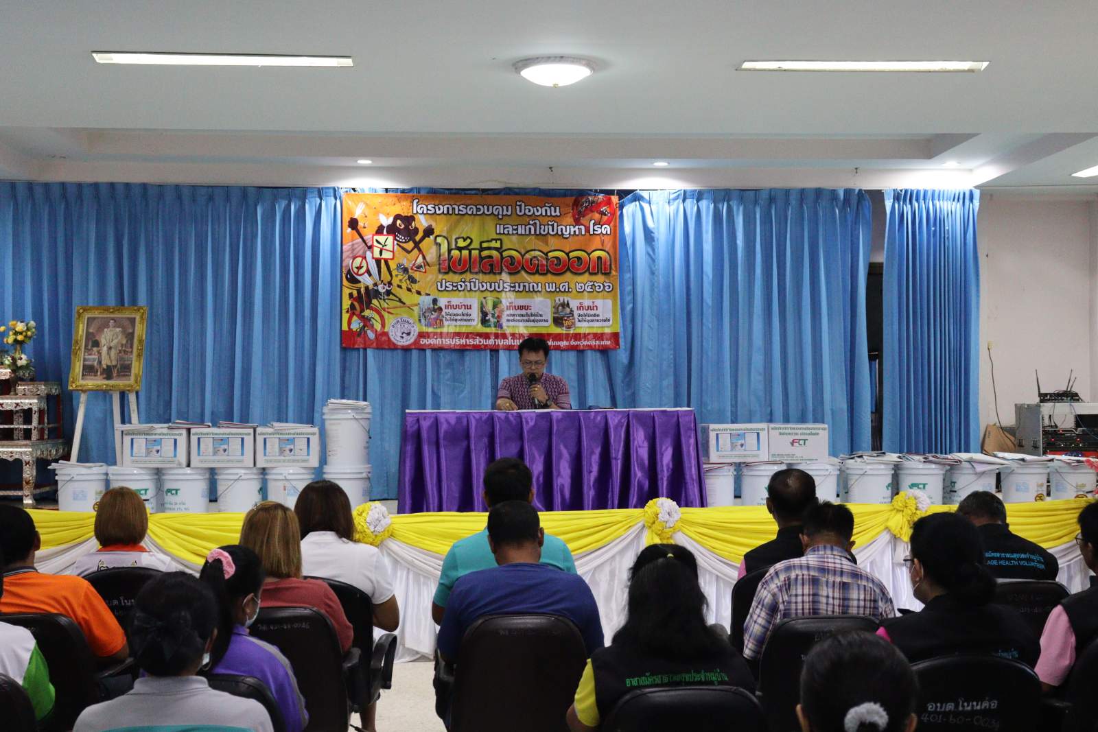วันที่ 11 กรกฎาคม 2566 งานสาธารณสุข องค์การบริหารส่วนตำบลโนนค้อ จัดโครงการควบคุมป้องกันและแก้ไขปัญหาโรคไข้เลือดออก ประจำปีงบประมาณ 2566 โดยมีนายกรีฑา เครือคุณ นายกองค์การบริหารส่วนตำบลโนนค้อ เป็นประธานจัดกิจกรรมโครงการ เพื่อให้ประชาชนในพื้นที่มีความรู้ ความเข้าใจและตระหนักถึงการป้องกันโรคดังกล่าว โดยมีวิทยากรจากโรงพยาบาลโนนคูณมาให้ความรู้ ได้รับความสนใจจากผู้นำชุมชน ประชาชนในพื้นที่ตำบลโนนค้อในการเข้าร่วมรับฟังความรู้ในครั้งนี้