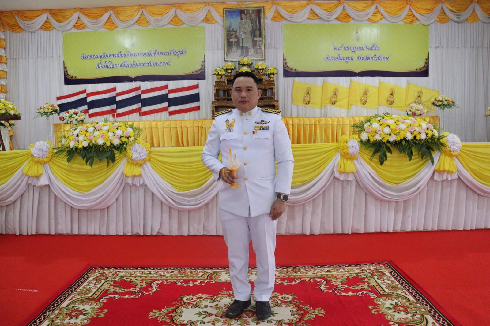เวลา 07.30 น. วันที่ 28 กรกฎาคม 2566 ณ หอประชุมที่ว่าการอำเภอโนนคูณ จังหวัดศรีสะเกษ ได้จัดพิธีทำบุญตักบาตรเนื่องในโอกาสวันเฉลิมพระชนมพรรษา พระบาทสมเด็จพระเจ้าอยู่หัว 28 กรกฎาคม 2566 เพื่อถวายเป็นพระราชกุศล โดยมีนายโกวิท แก้วสุขอยู่เจริญ นายอำเภอโนนคูณ เป็นประธานในพิธี องค์การบริหารส่วนตำบลโนนค้อ โดยนายกรีฑา เครือคุณ นายกองค์การบริหารส่วนตำบลโนนค้อ นำสมาชิกสภาองค์การบริหารส่วนตำบลโนนค้อ ข้าราชการ ข้าราชการครูโรงเรียนในสังกัด พนักงานส่วนตำบลองค์การบริหารส่วนตำบลโนนค้อเข้าร่วมในพิธี หลังเสร็จสิ้นพิธีในช่วงเช้า เวลา 17.30 น. ณ หอประชุมที่ว่าการอำเภอโนนคูณ นายโกวิท แก้วสุขอยู่เจริญ นายอำเภอโนนคูณ นำหัวหน้าส่วนราชการทุกส่วน ผู้บริหารท้องถิ่นทั้ง 5 ตำบล หน่วยรัฐวิสาหกิจ และภาคประชาชน ร่วมถวายวางพานพุ่มดอกไม้ กล่าวถวายราชสดุดีและถวายบังคมหน้าพระบรมฉายาลักษณ์ พระบาทสมเด็จพระปรเมนทรรามาธิบดีศรีสินทรมหาวชิราลงกรณ พระวชิรเกล้าเจ้าอยู่หัว เพื่อแสดงความจงรักภักดีและน้อมรำลึกในพระมหากรุณาธิคุณ เนื่องในวันคล้ายวันเฉลิมพระชนมพรรษา