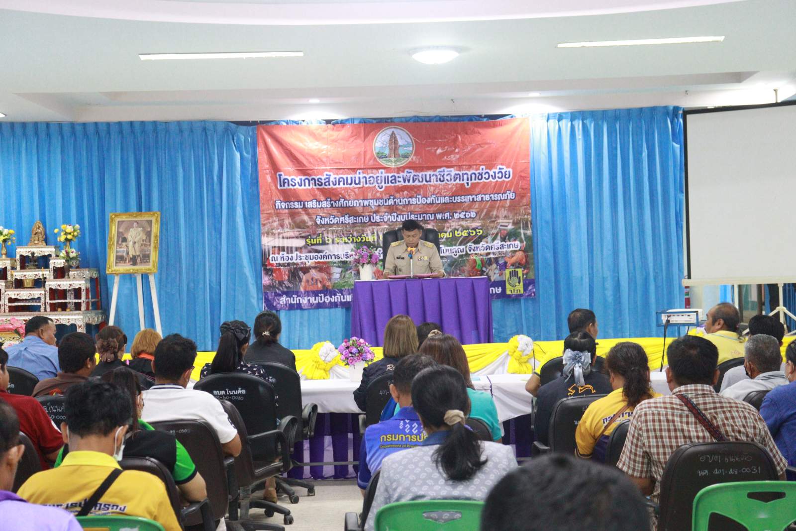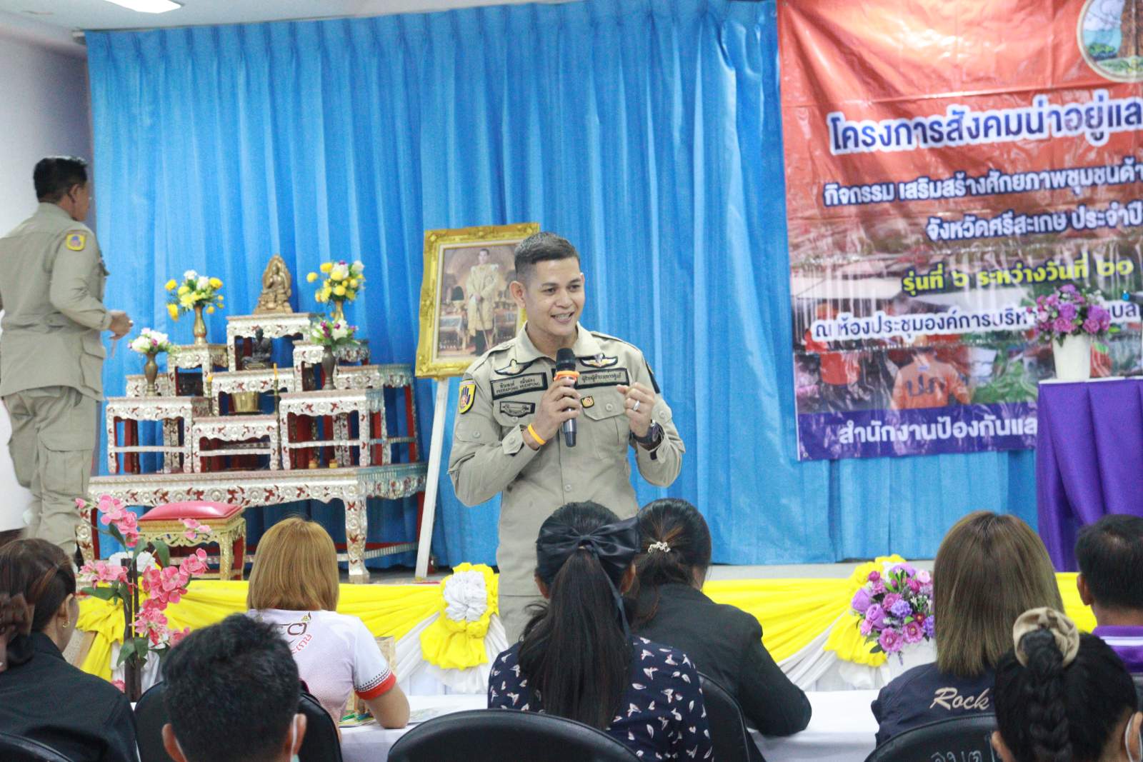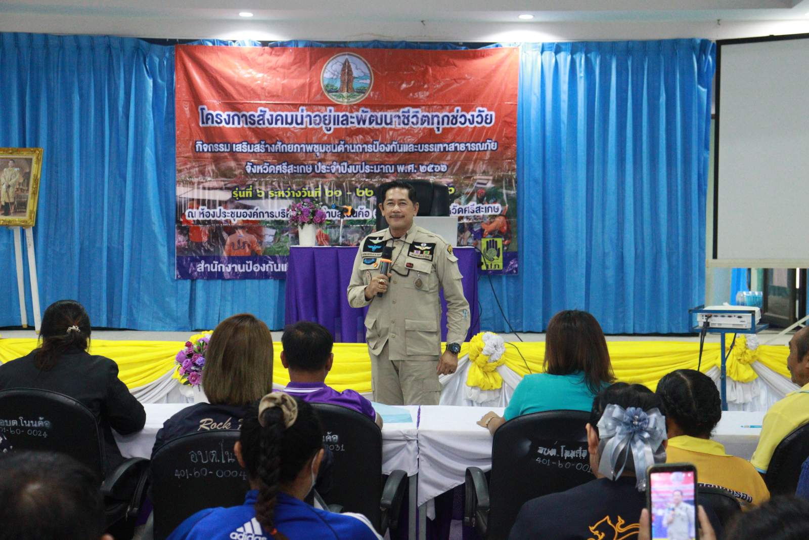 โครงการสังคมน่าอยู่และพัฒนาชีวิตทุกช่วงวัยกิจกรรม เสริมสร้างศักยภาพชุมชนด้านการป้องกันและบรรเทาสาธารณะภัย จังหวัดศรีสะเกษ ประจำปีงบประมาณ พ.ศ. 2566 รุ่นที่ 6 ระหว่างวันที่ 21-22 สิงหาคม 2566
