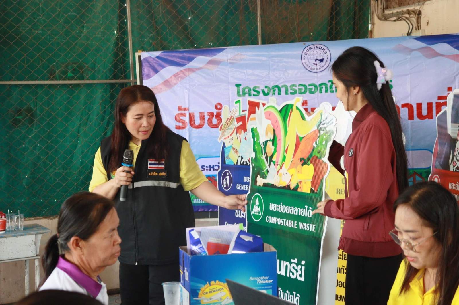 3. งานขยะมูลฝอย ให้ความรู้แก่ประชาชนในการบริหารจัดการขยะภายในครัวเรือน รับผิดชอบโดย น.ส.รัชนีกร สุขเจริญ (นักจัดการงานทั่วไปชำนาญการ)