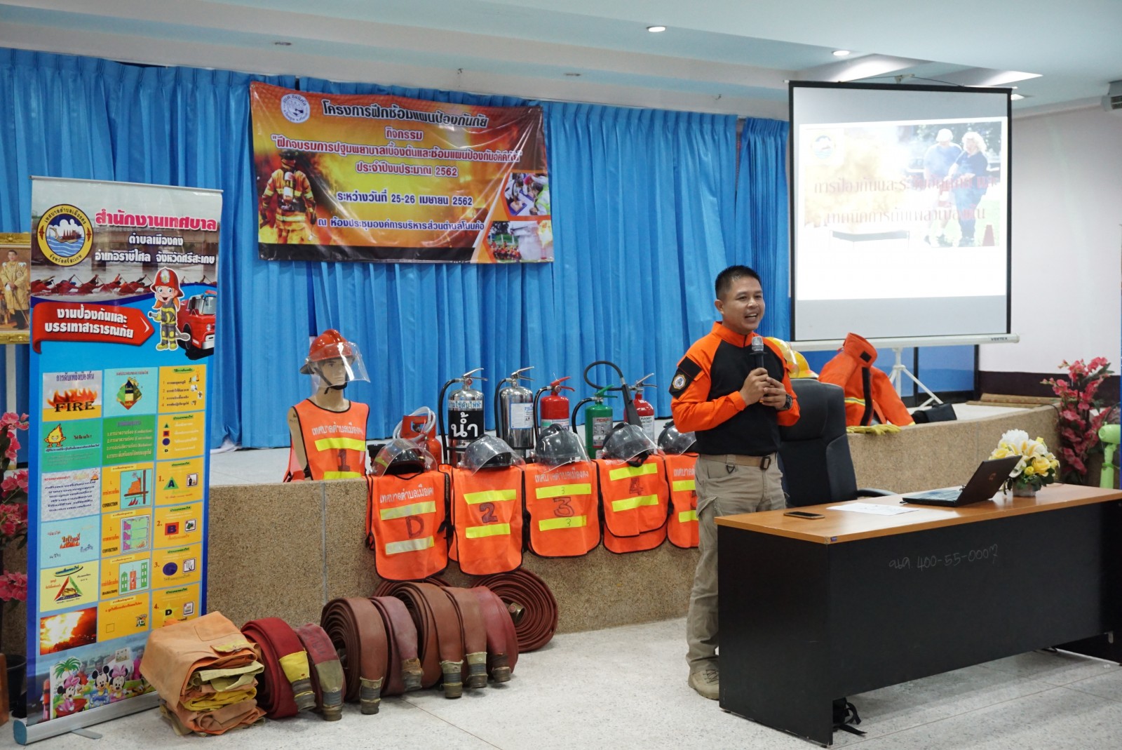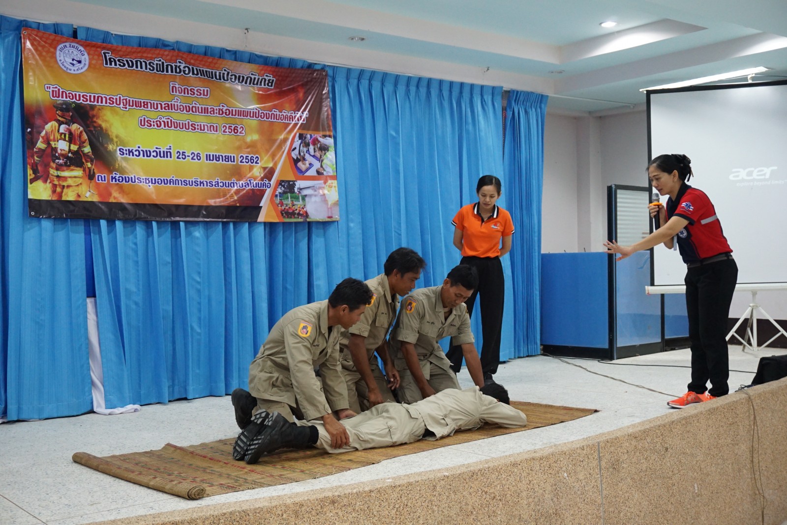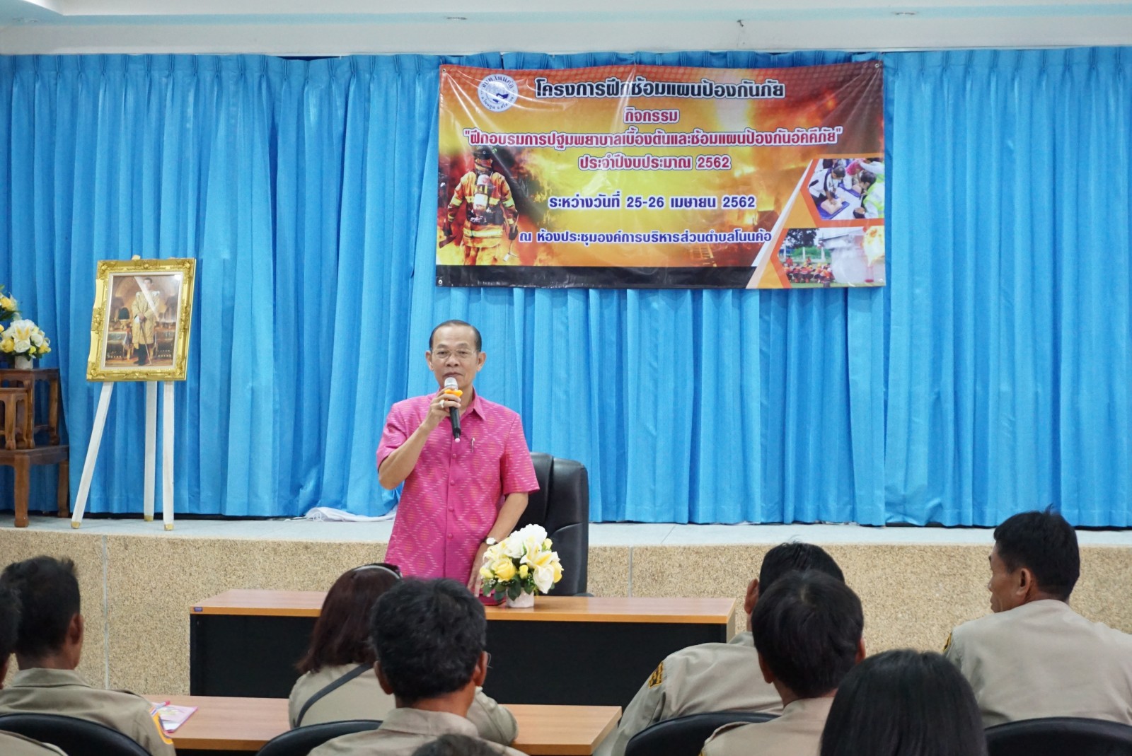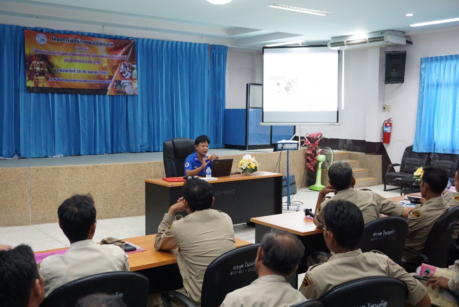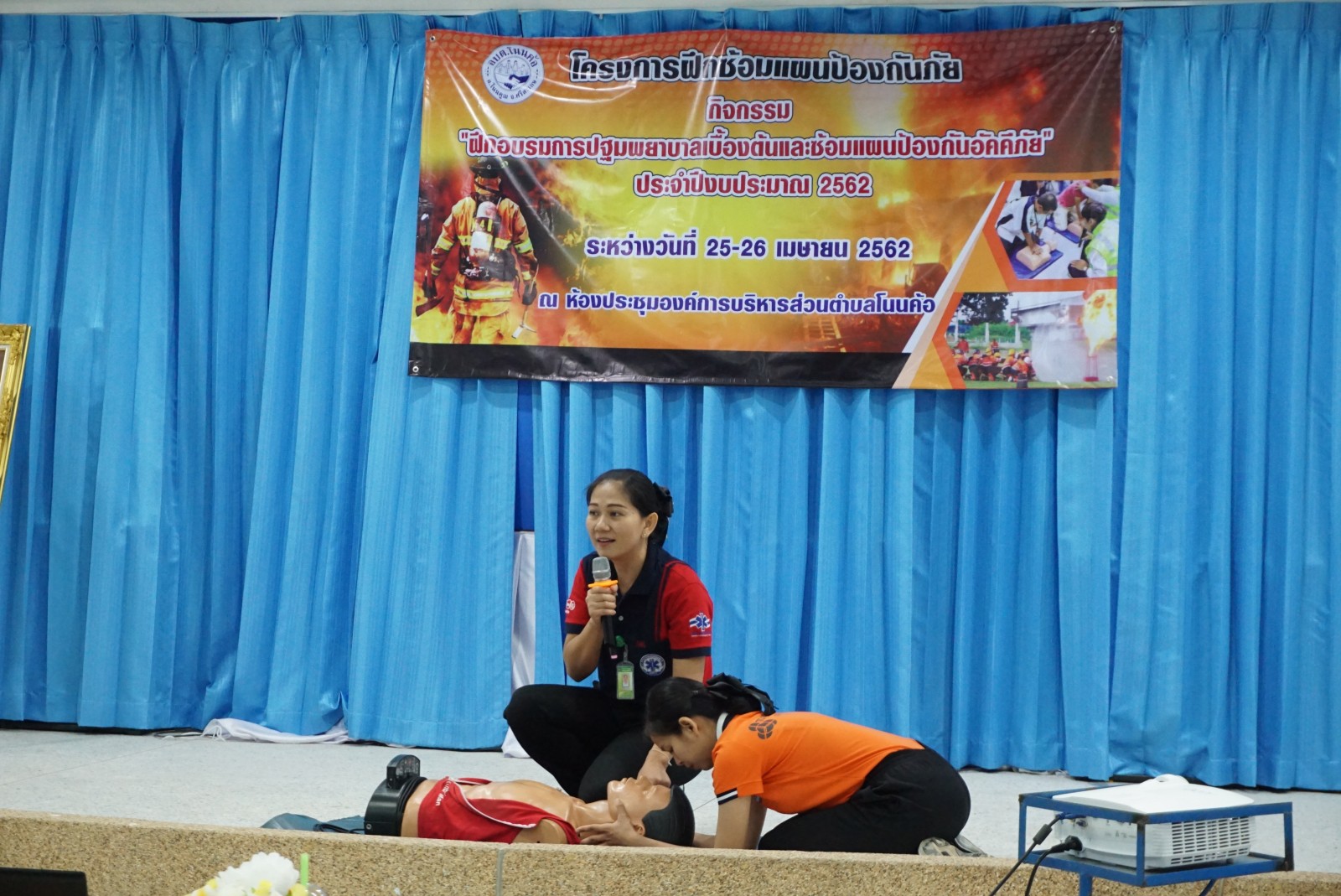 ด้วยสำนักปลัด งานป้องกันและบรรเทาสาธารณภัย องค์การบริหารส่วนตำบลโนนค้อ ได้ดำเนินการจัดโครงการฝึกซ้อมแผนป้องกันภัย “กิจกรรมฝึกอบรมการปฐมพยาบาลเบื้องต้นและซ้อมแผนป้องกันอัคคีภัย” ประจำปีงบประมาณ 2562 ขึ้นในวันที่ 25-26 เมษายน 2562 ณ ห้องประชุมองค์การบริหารส่วนตำบลโนนค้อ โดยมีวัตถุประสงค์เพื่ออบรมให้ความรู้แก่ข้าราชการ ลูกจ้าง และอาสาสมัครป้องกันภัยฝ่ายพลเรือน ซึ่งได้แบ่งการอบรมในวันแรกเกี่ยวกับความรู้และทักษะการปฐมพยาบาลเบื้องต้น ให้แก่ผู้ประสบเหตุการณ์ฉุกเฉิน โดยวิทยากรจากโรงพยาบาลโนนคูณ และในวันที่สองเป็นการฝึกภาคสนามของเจ้าหน้าที่ อปพร.เกี่ยวกับการป้องกันระงับอัคคีภัย ซึ่งได้มีวิทยากร เจ้าหน้าที่จากงานป้องกันและบรรเทาสาธารณภัย เทศบาลกันทรลักษณ์ ในการอบรมให้ความรู้และสาธิตการปฎิบัติการพร้อมทั้งให้ลงมือปฏบัติจริงเพื่อเพิ่มทักษะในการปฏิบัติงานจริง