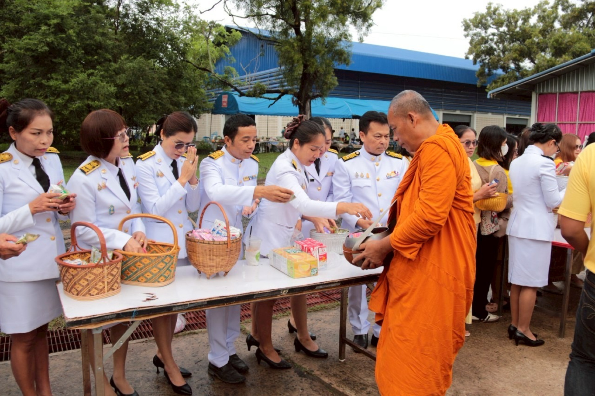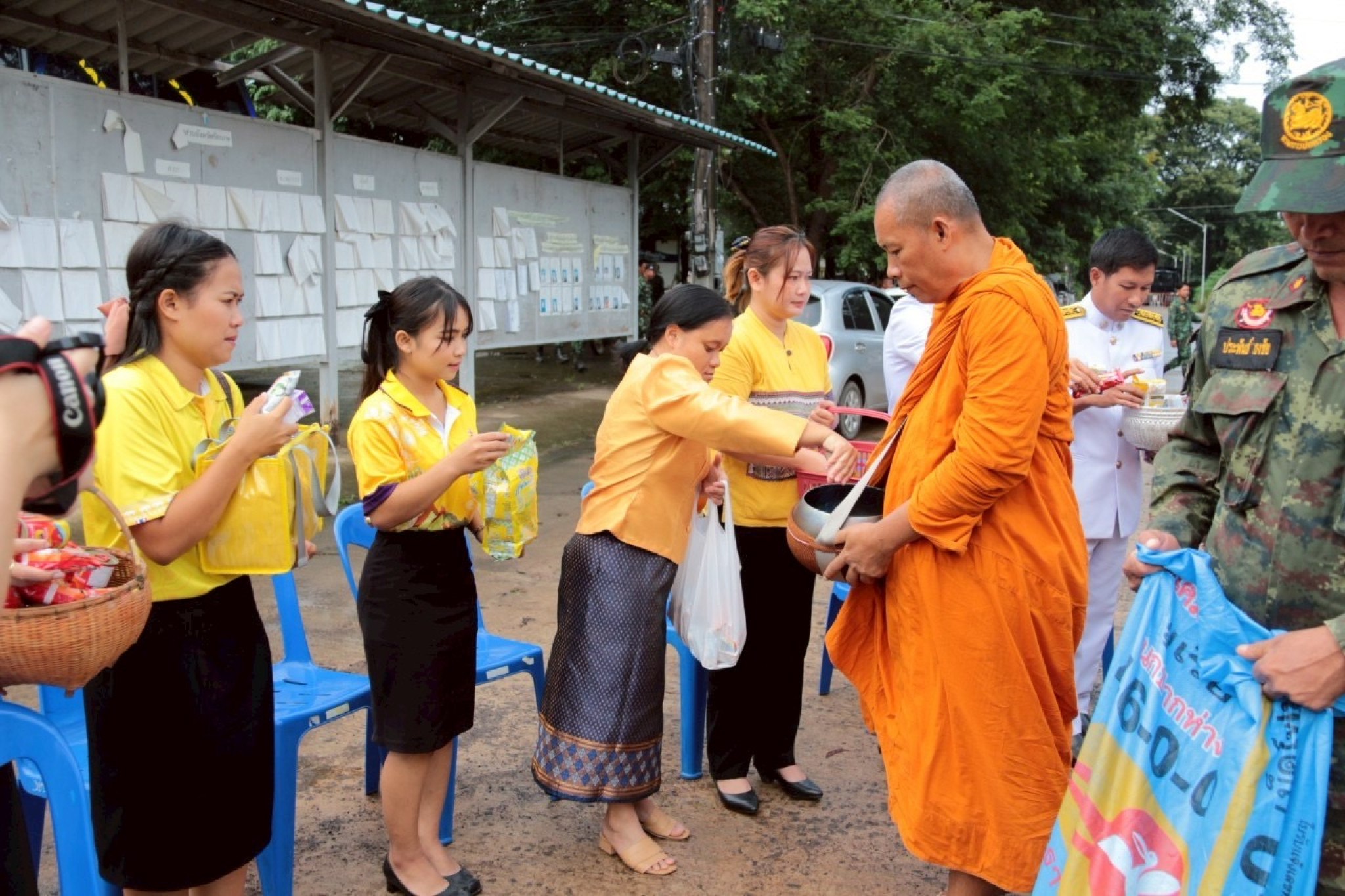 เวลา 07.30 น. พิธีทําบุญตักบาตรถวายพระราชกุศล