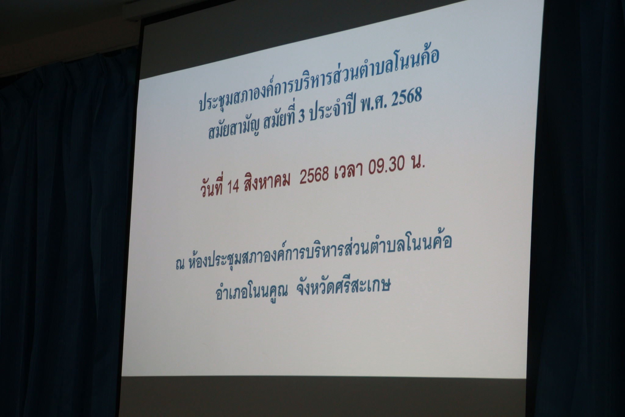 14 สิงหาคม 2568 องค์การบริหารส่วนตำบลโนนค้อ ประชุมสภาองค์การบริหารส่วนตำบลโนนค้อ สมัยสามัญ สมัยที่ 3 ประจำปี พ.ศ. 2568 นำโดยนายรัตนา ขันชัย ประธานสภาองค์การบริหารส่วนตำบลโนนค้อ และสมาชิกสภาองค์การบริหารส่วนตำบลโนนค้อ ทั้ง 20 หมู่บ้าน โดยมี นายกรีฑา เครืองคุณ นายกองค์การบริหารส่วนตำบลโนนค้อ คณะผู้บริหาร พร้อมทั้ง พ.อ.อ.กฤษ กรกฤติเดช ปลัด อบต.โนนค้อ หัวหน้าสำนักปลัด ผอ.กองทุกกอง พนักงานส่วนตำบล และเจ้าหน้าที่ที่เกี่ยวข้อง เข้าร่วมประชุมดังกล่าว เพื่อพิจารณาร่างข้อบัญญัติงบประมาณรายจ่าย ประจำปีงบประมาณ พ.ศ. 2569 (วาระที่ 1) ขั้นรับหลักการ รวมทั้งปรึกษาหารือข้อราชการต่างๆ
