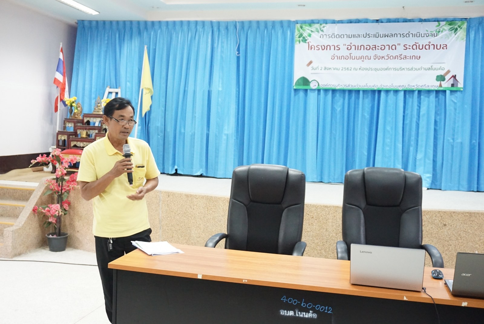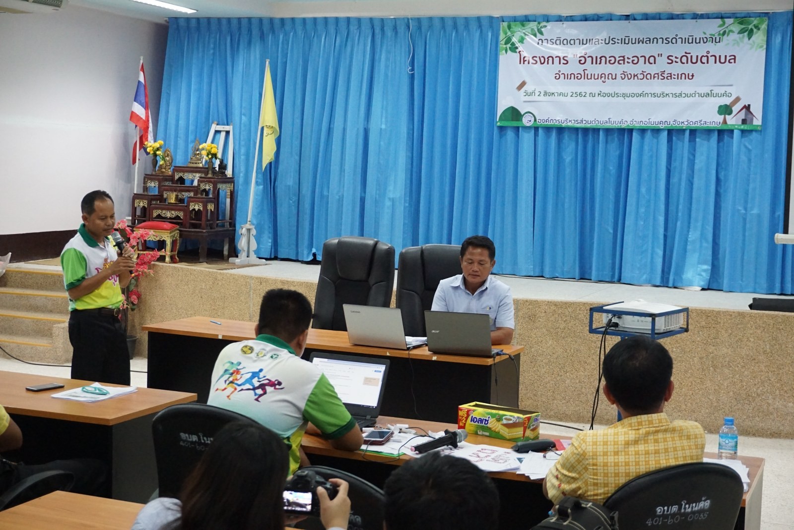 เมื่อวันที่ 2 สิงหาคม 2562 ณ ห้องประชุมองค์การบริหารส่วนตำบลโนนค้อ นายภัทรนันทน์ บุญมานัด นายอำเภอโนนคูณ พร้อมด้วยท้องถิ่นอำเภอโนนคูณ นายปิยะ ล้วนเส้ง เข้ารับการตรวจประเมินและติดตามผลการดำเนินงาน โครงการ "อำเภอสะอาด" ระดับตำบล โดยเป็นลำดับของตำบลโนนค้อ โดยมีนายชาติชาย เลขาตระกูล นายกองค์การบริหารส่วนตำบลโนนค้อ ร่วมด้วยคณะผู้บริหาร และพนักงานองค์การบริหารส่วนตำบลโนนค้อ ร่วมรับฟังข้อชี้แนะ ซึ่งในการดำเนินการมีนางรัชนีกร สุขเจริญ นักจัดการงานทั่วไป เป็นผู้นำเสนอเกี่ยวกับการบริหารจัดการขยะในหน่วยงานและในชุมชน ร่วมด้วยผู้นำชุมชนทุกหมู่บ้านร่วมกันหาแนวทางการบริหารจัดการขยะในชุมชนและรับทราบปัญหาที่เกิดขึ้นในชุมชน