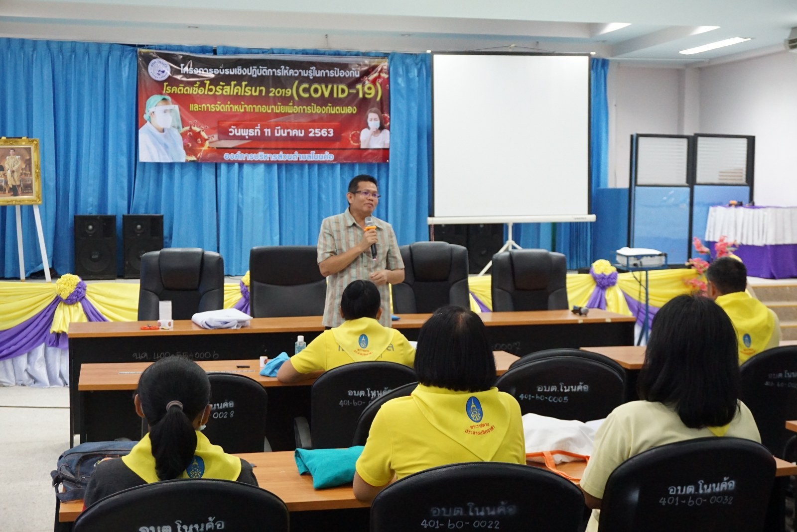 วันที่ 11 มีนาคม 2563 เวลา 09.00 น. องค์การบริหารส่วนตำบลโนนค้อได้จัด โครงการอบรมเชิงปฏิบัติการให้ความรู้ในการป้องกันโรคติดเชื้อไวรัสโคโรนา 2019 "COVID-19" และการจัดทำหน้ากากอนามัยเพื่อป้องกันตนเอง ประจำปีงบประมาณ 2563 ขึ้น ณ ห้องประชุมองค์การบริหารส่วนตำบลโนนค้อ โดยมีนายชาติชาย เลขาตระกูล นายก อบต.โนนค้อ เป็นประธานเปิดโครงการ โดยมีวิทยากรจากทางโรงพยาบาลโนนคูณมาให้ความรู้วิธีป้องกันโรคไวรัสสายพันธุ์ใหม่ Covid-19 เพื่อเป็นการเตรียมพร้อม และยังได้สาธิตวิธีการทำหน้ากากอนามัยจากผ้า 4 ชั้น เพื่อทดแทนหน้ากากอนามัยที่ปัจจุบันมีการควบคุม ซึ่งผู้เข้าร่วมอบรมจะได้รับการตรวจวัดอุณหภูมิและมีแอลกอฮอลล้างมือไว้คอยให้บริการผู้เข้าร่วมอบรม ซึ่งได้รับความสนใจเป็นตัวแทนหมู่บ้านทั้ง 20 หมู่ และยังได้ลงมือปฏิบัติจริงจนสามารถนำไปขยายผลเผยแพร่ความรู้ให้สมาชิกในหมู่บ้านได้